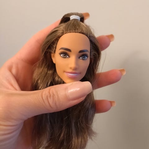 👉🏻Regular mtm body from 2026 Barbie Basics You Create Kit 002 with 👉🏻 the head from 2026 Barbie Basics 09. (I did washed her hair).