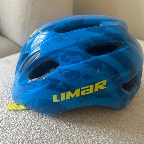 Limar sykkelhjelm i blå farge med mønster. Hjelmen har flere ventilasjonsåpninger for lufting og polstring på innsiden for økt komfort. Justerbar stropp under haken. Egnet til sykling og annen bruk der hodebeskyttelse er nødvendig.