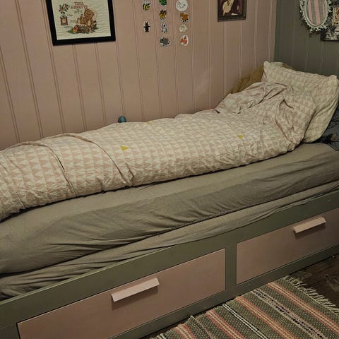 Hemnes Uttrekksseng fra IKEA inkl to madrasser. Selges for 1800kr