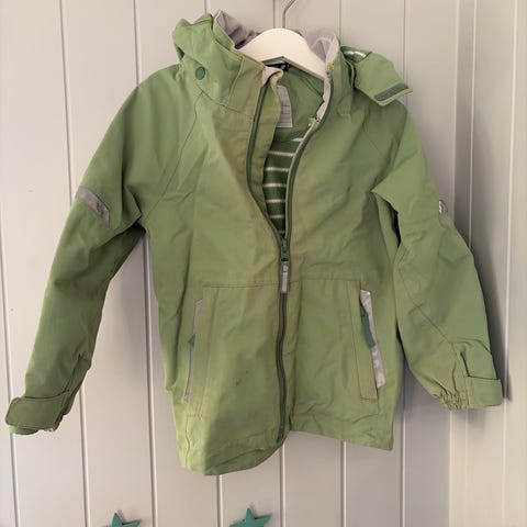 Pent brukt skalljakke i str. 110 selges. Ingen hull eller andre slitasjeskader. Kan sendes mot porto.