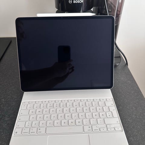 Tastaturet gjør at iPaden kan brukes nesten som en liten laptop, og Apple Pencil er super til notater eller tegning.