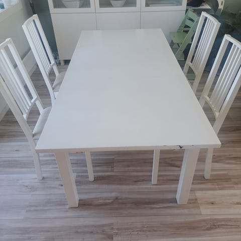 Er det noen som er på utkikk etter spisebord og stoler i veldig god stand? Bordet har to lemmer, og det blir derfor ingen problem å samle venner og familie til en god middag😊