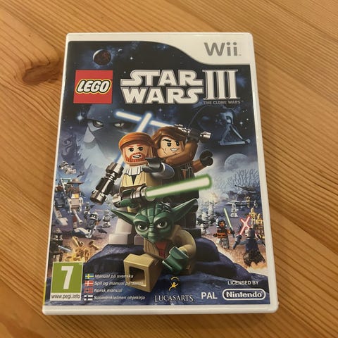 Lego Star Wars III The Clone Wars spill for Nintendo Wii. Action- og eventyrspill satt i Star Wars-universet, presentert i Lego-stil. Spillet følger handling og figurer fra The Clone Wars-serien og inneholder flerspillermodus, ulike oppdrag og kjente miljøer fra filmene. Format: PAL. Anbefalt aldersgrense 7 år .