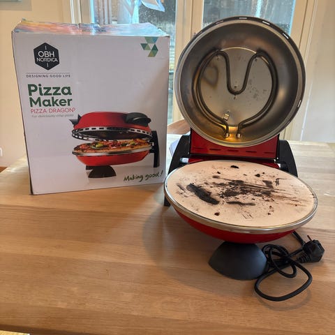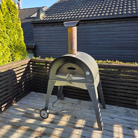 Pizzaovn som fyres med ved/pellets. Har stått ute under tak.