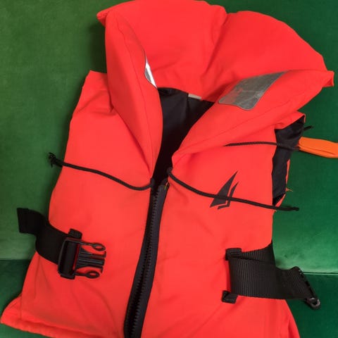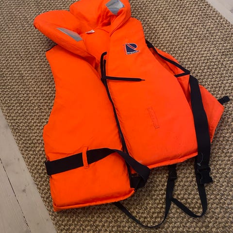 Viking Delfin redningsvest for barn med vekt 10–15 kg. Vesten er i synlig oransje farge og har stor krage for støtte til hode. Den har glidelås i front og justerbar snøring. Egnet til bruk ved båt- og vannaktiviteter der oppdrift og synlighet er viktig.