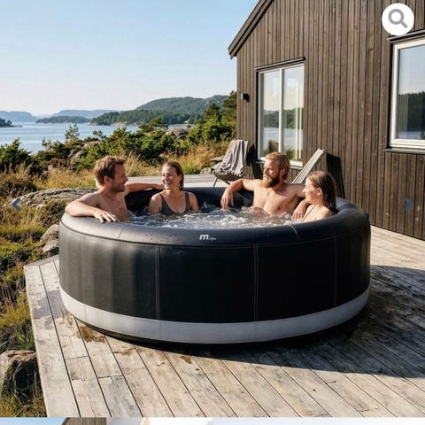 Egnet som oppblåsbart utespa på terrasse, platting eller i hage, for flere personer samtidig. Kan brukes til bading, avslapping og enkel massasje med justerbare funksjoner.