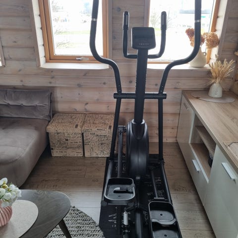 Levity crosstrainer i svart utførelse med innebygd treningscomputer. Maskinen har håndtak med pulssensorer og display som viser grunnleggende treningsdata som tid, hastighet, distanse og kalorier. Pedalene er brede for stabil fotplassering. Egnet til kondisjonstrening og helkroppstrening hjemme. Maskinen er beregnet for innendørs bruk.