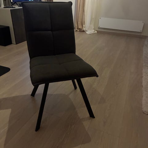 Pent brukte spisestoler selges. Bordet følger ikke med