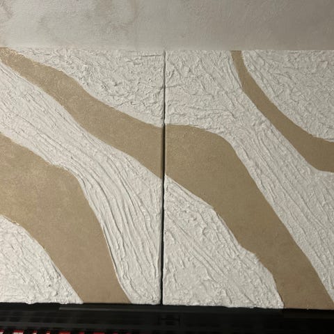 Abstrakt veggkunst som gir en rustikk og varm følelse til stuen din ✨ Laget i matt aluminium. Størrelse: 140 x 93 cm. Nypris 4130,-