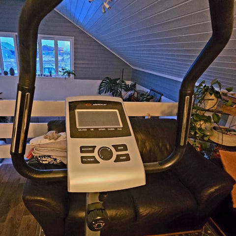 Nordic Cycle C4 trimsykkel for innendørstrening. Sykkelen har justerbart sete og styre, samt pedaler med fotstropper. Konsollen viser blant annet tid, hastighet, distanse, kaloriforbruk og puls. Egnet til kondisjonstrening hjemme for én person av gangen.