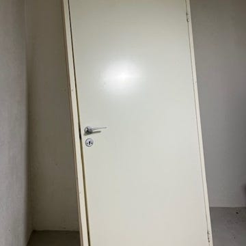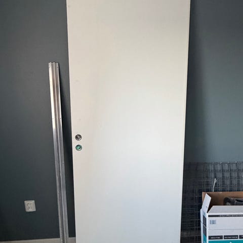 Dør selges rimelig. Døren er ny, men har noen mindre skader, så har markert den som synlig brukt. Se bilder. Scanflex. 204*82 cm. Fargen er «Kalk».