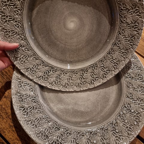 Selger 12 tallerken Mateus Bubbles i grå keramikk Ø 28 cm.