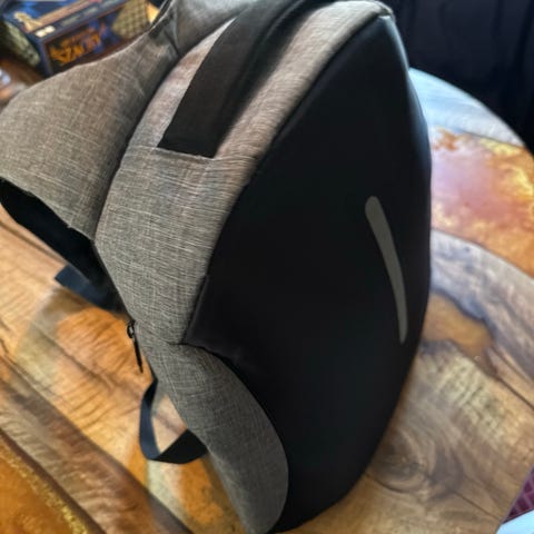 En brukt ryggsekk perfekt til reise. Har hittil ikke hatt noen problemer med Wizzair eller Ryanair.