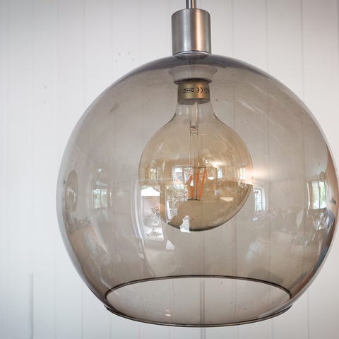 Taklampe med skjerm av plexiglass. 10 lyspærer.