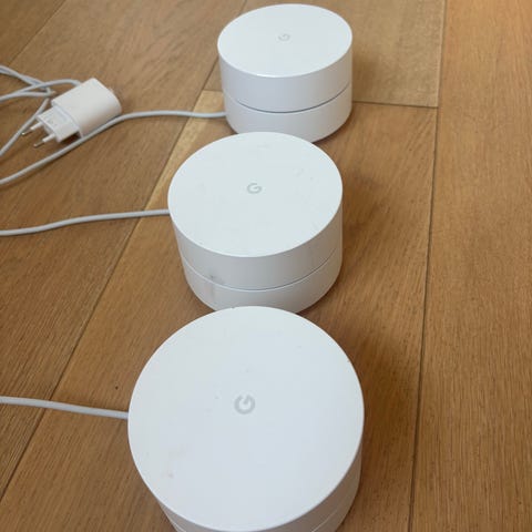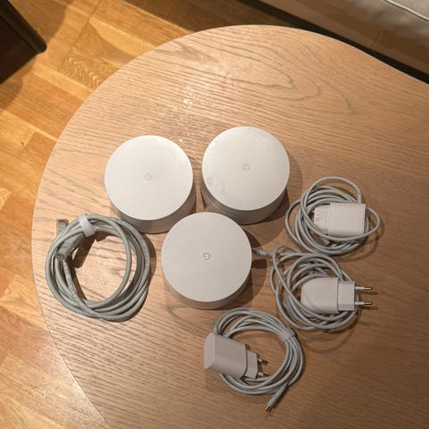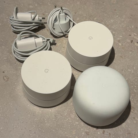 Google Wifi 1. gen mesh-ruter sett med 3stk bokser.