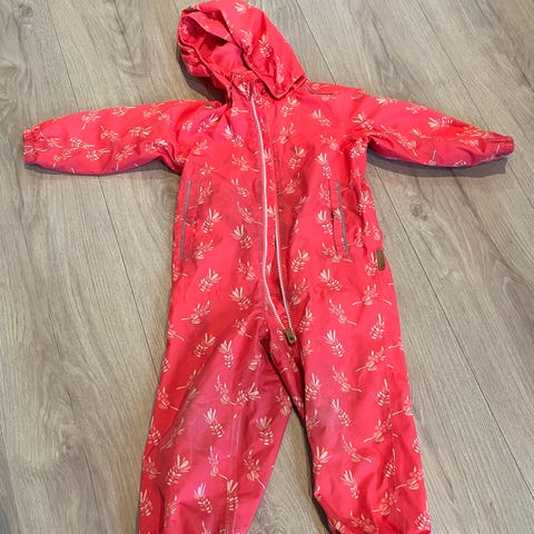Dressen er godt brukt men mye bruk igjen! Er nyvasket og ren, har noe slitasje og flekker på ene ermet som jeg ikke får bort i vask. Ellers fant jeg litt nupper på bakenden å et lite hull på ryggen. Dette har ikke hatt noen betydning for vår bruk. Strikken i bena er hel. Ellers er dressen i god stand. Perfekt for barnehage for vår/høst .