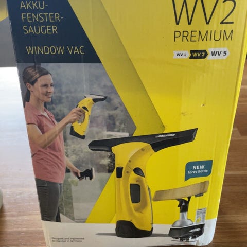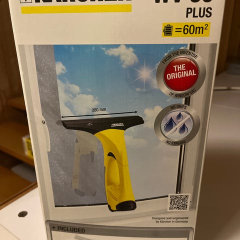 Kärcher WV 2 Plus N vindusvasker. Batteridrevet vindusvasker for rengjøring av vinduer og glatte flater. Enheten har integrert smuss- og vannoppsamling som reduserer søl under bruk. Pakken inneholder vanligvis vindusvasker, sprayflaske med mikrofiberklut og gumminal. Egnet til bruk på vinduer, speil, dusjdører og andre glatte overflater i hjemmet.