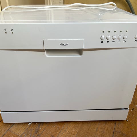 Liten og nett oppvaskmaskin til å ha på benk. Stått i utleieenhet og fungerer som den skal.