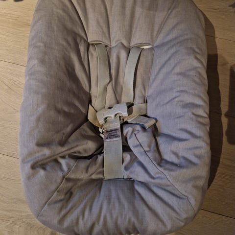 Newborn sete til Stokke Tripp Trapp høy barnestol.