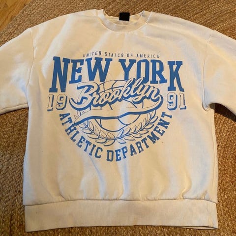 Gina Tricot collegegenser for dame i størrelse XS. Genseren er beige og laget i bomull. Klassisk modell med rund hals og lange ermer. Passer til hverdagsbruk og kan kombineres med både bukser og skjørt.