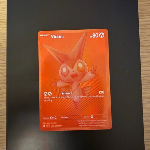Vurderer salg av Victini. Leveres i Ultra Pro-beskytter som vist på bildene.
