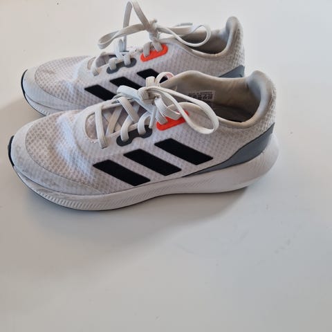 Adidas Gazelle joggesko i størrelse 35. Skoene er i rødt (burgunder) semsket materiale med hvite Adidas-striper og hvit hælkappe. Brukt. Ingen hull.