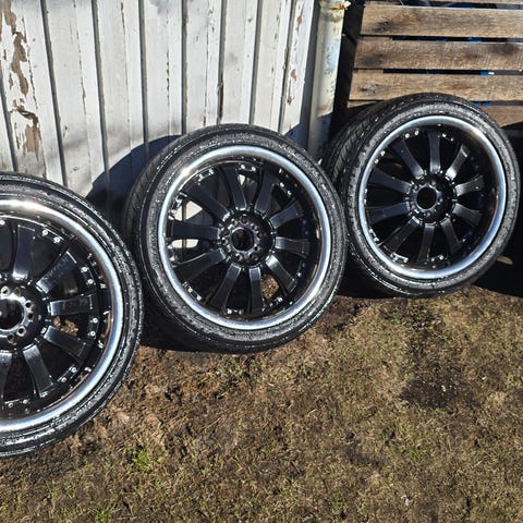 Stått på Ford Taunus 20m med senterringer og spacer (medfølger hvis ønskelig), men passer også flere biltyper. Passer bra på Amcar som Chevrolet, Pontiac, Oldsmobile, Pontiac, Buick, Cadillac osv.