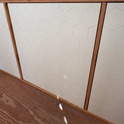 De er rillet og laget av mdf. Maling i fargen vanilje fra Jotun. Men kan male i hvilken som helst farge.