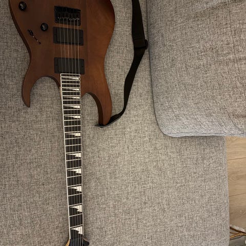 Dean elektrisk gitar i brun finish. Kroppen har dobbel cutaway-utforming og er utstyrt med tre pickuper og tremolosystem. Gitaren har seks strenger, bolt-on hals og gripebrett med innfelte posisjonsmarkører. Stemmeskruer og hardware er i gullfarge. Passer til elgitarspill i ulike sjangre.