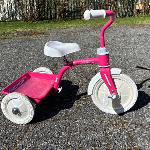 Rosa DBS trehjuling sykkel. Lite brukt, men er noen år gammel så håndtakene er litt falmet.