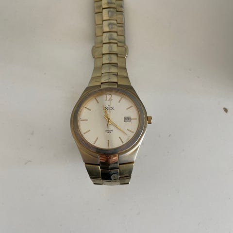 Selges grunnet den ikke blir brukt. Quartz movement så batteriet er dødt men det koster under 100,- for å skifte hos gullsmed/ur butikk.