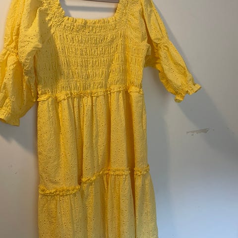 Nydelig ByLien kjole i grønn selges da den er for liten. Smock i brystet og flotte detaljer. Normal i størrelse. Kjolen er knelang til meg som er 168 cm. Den er 90 cm lang