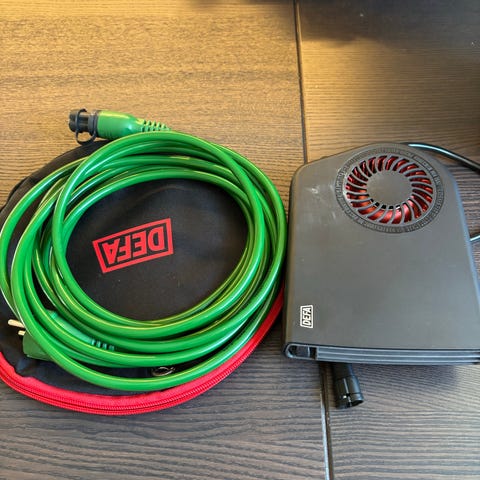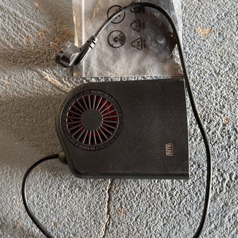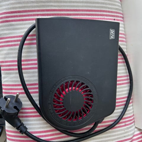 Liten kupévarmer med høy effekt for middels- til store personbiler. Gir rask oppvarming og jevn temperaturfordeling i hele kupéen og forkorter tilkobingstiden samt reduserer strømforbruket. Selvjusterende effekt avhengig av omgivende temperatur. Strømbryter med to effekter på 830/1700 W. Tar liten plass, kan f.eks. monteres hengende under hanskerommet. Mål 182x138x36 mm. 230 V