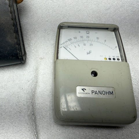 Selger et unikt og komplett stykke teknikkhistorie. Dette analoge voltmeteret fra HM (trolig Hartmann & Braun) er et profesjonelt presisjonsinstrument fra ca. 1920–1950. Instrumenthuset er frest ut av massivt tre.