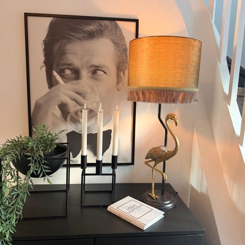 Skjermen er i sort fløyel med "gullfarge" på innsiden.