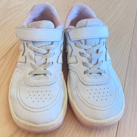 Hummel joggesko til barn, størrelse 29, for jente. Skoene har overdel i lys beige med rosa detaljer og lys grønn innside. De lukkes med tre borrelåsremmer over vristen for enkel av- og påkledning. Yttersålen er i gummi med mønster for bedre grep. Egnet som hverdagssko og til lett aktivitet for barn i aktuell skostørrelse. Brukt av et barn en sesong