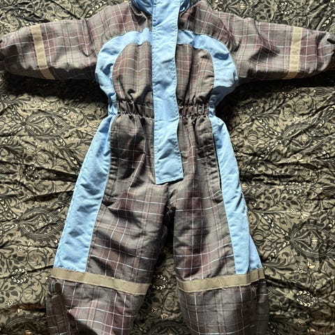Godt brukt parkdress, godt slitesterkt stoff med ekstra polstring på knær . Slitte sko stropper, som er klare for utskifting. Mangler hette . Mye bruk igjen