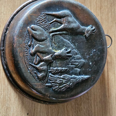 Liten skål i kobber med hanker selges