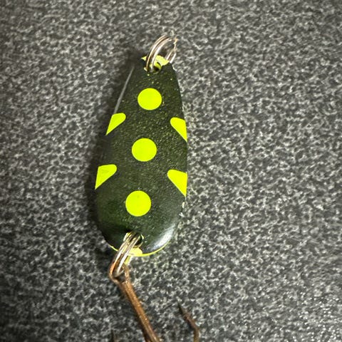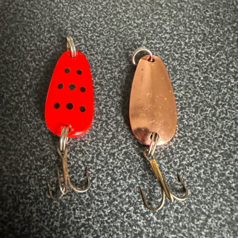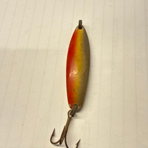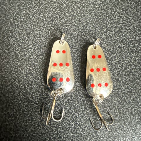 Sølvkroken Favoritt sluk på 12 gram i rød farge. Klassisk skjesluk med treblekrok. Egnet til ferskvannsfiske og lett sjøfiske etter ulike rovfiskarter. Vekt og modell er preget på baksiden av sluken: "Favoritt Sølvkroken Norway 12 g".