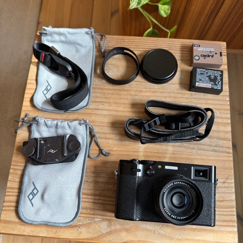 Fujifilm X100VI selges. Kameraet har følgende utover det som fulgte med da det var nytt: