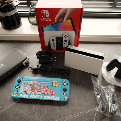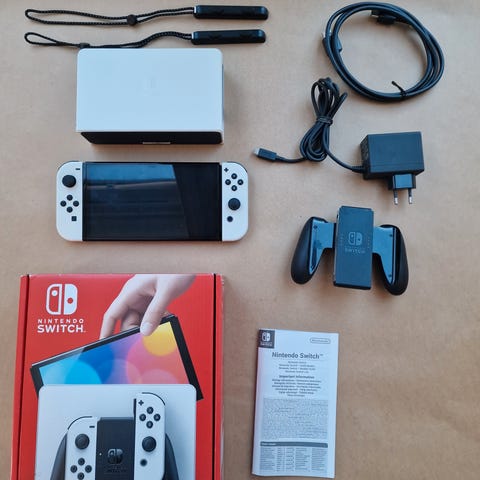 Konsollen har stor, krystallklar skjerm med skjerm beskytter i glass og 64GB intern lagring. Alt utstyr på bildene følger med, det er også ingen drifting på joy-consene 🎮