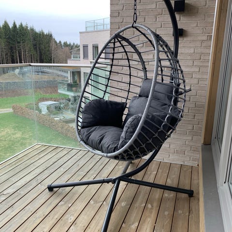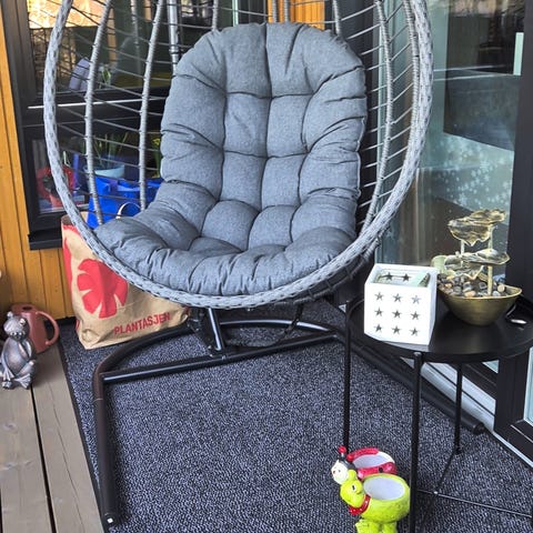 Hengestol fra Plantasjen. Kosta ny 3999,- full pris. Brukt en sommer, selges pga plassmangel. Pute til sete og hode følger med. Str: 105x105x195 22 kg