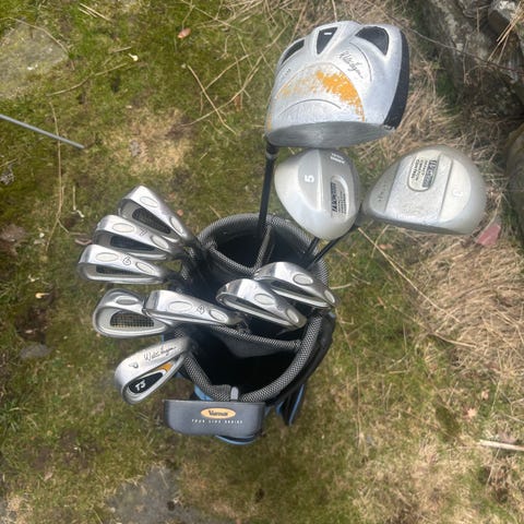 Klubbene er pent brukt og i god stand, normale bruksspor men ingenting som påvirker spillbarheten. Et veldig fint startsett eller et rimelig oppgraderingssett.