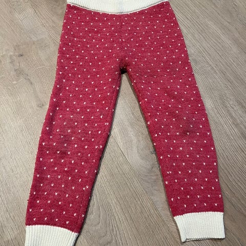 Hust & Claire og Joha ullbukser for jente i størrelse 110. Buksen er i merinoull. Egner seg som innerlag eller kosebukse til hverdagsbruk og uteaktiviteter i kjøligere vær.