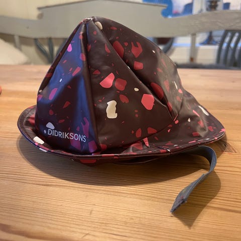 Vanntett sydvest fra Didriksons med et elastiskt bånd under haken med borrelåslukning. Perfekt som beskyttelse mot vind og regn.