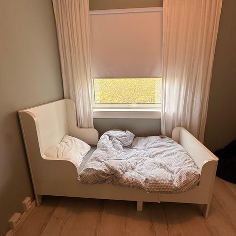 Pent brukt barneseng med svært få bruksmerker. Uttrekkbar, slik at sengen kan forlenges i takt med at barnet vokser.