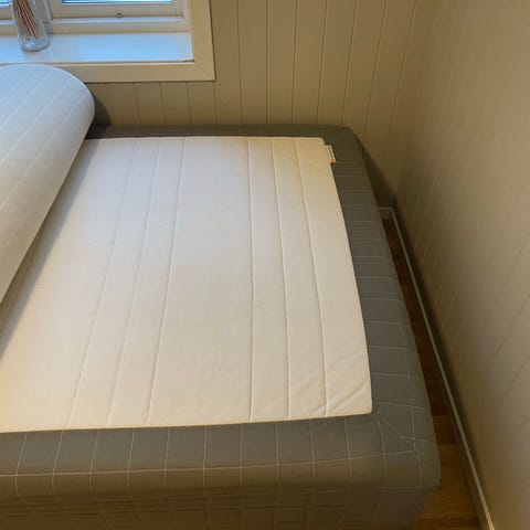 Carpe Diem Beds rammemadrass med treben. Målene på sengen er ca. 201 x 91 x 26 cm (lengde x bredde x høyde på rammemadrass uten ben). Rammen er i tre med lameller, og madrassen har quiltet trekk i lys farge med mønster. Egner seg som enkeltseng på soverom, gjesterom eller hybel. Ben følger med som vist på bildene.