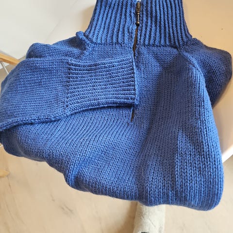 Strikket i Peer Gynt og alpakkagarn følgetråd begge fra Sandnes garn. Lite brukt, selges da den er litt liten til meg. Størrelse XS / S avhengig av hvor stor man ønsker den. Følger med litt restegarn hvis ønskelig. Røyk og dyrefritt hjem. Selges for 790kr.