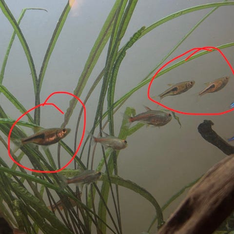 Selger 5 friske og aktive rødøyet tetra. Dette er flotte stimfisk som passer godt i selskapsakvarium sammen med andre fredelige fisk.