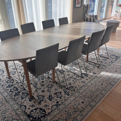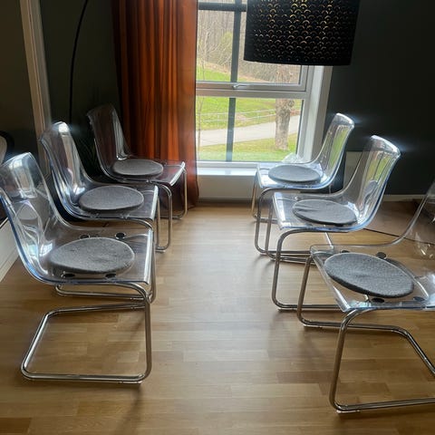6 Flotte stoler fra IKEA selges med grått trekk og hvite trekk som er bestilt fra Bemz. Veldig gode å sitte i.Et kupp